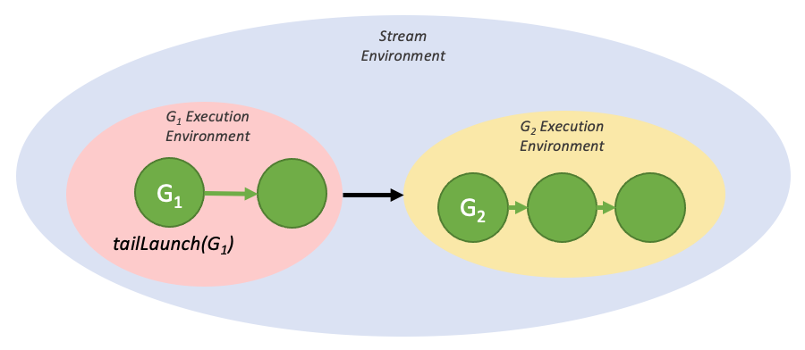 A tail launch executes when a graph’s environment is considered complete - ie, when the graph and all its children are complete. When a graph completes, the environment of the next graph in the tail launch list will replace the completed environment as a child of the parent environment. Like fire-and-forget launches, a graph can have multiple graphs enqueued for tail launch.
